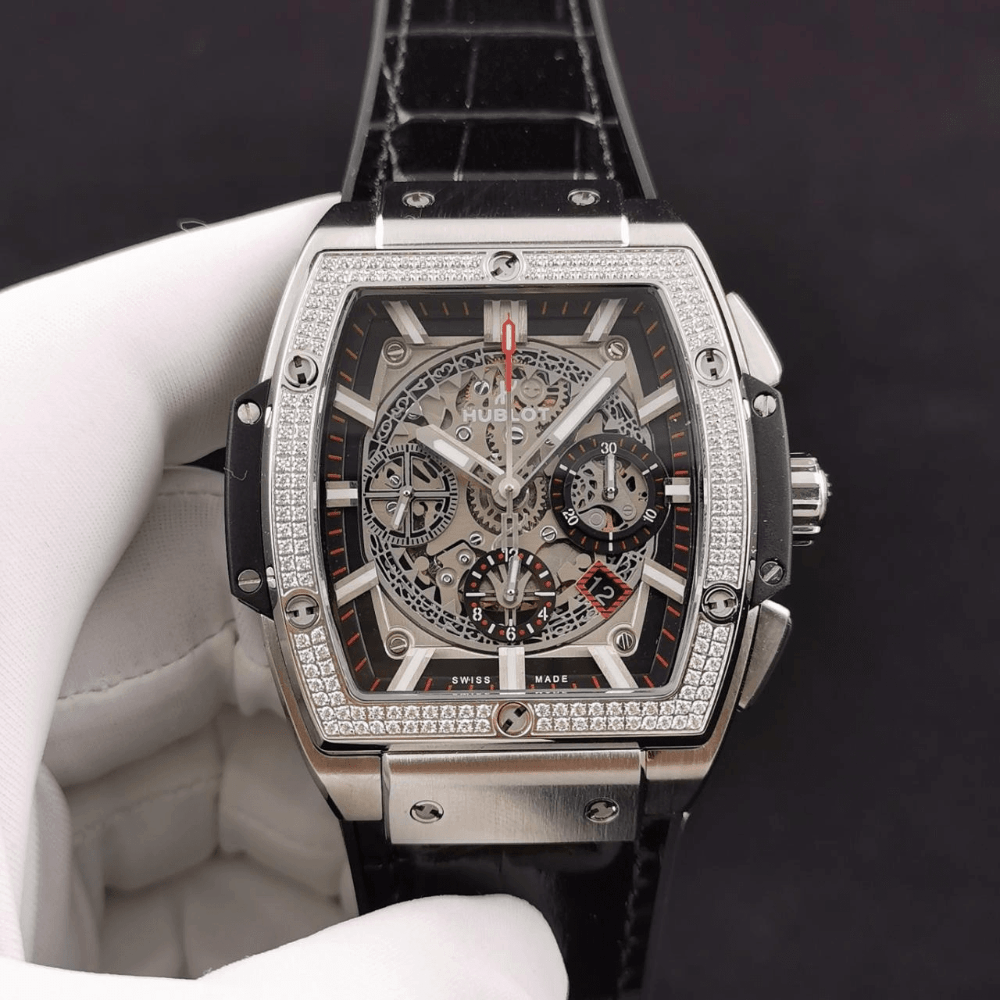 위블로(Hublot)는 레이싱 카에서 영감을 받았습니다. 강렬한 미적 시각적 효과로 새로운 스피릿 오브 빅뱅(Spirit of Big Bang)을 선보입니다. 케이스는 흰색 레진 소재로 제작되었으며, 6개의 H자형 나사를 사용하여 "샌드위치" 구조를 구축하여 "통합 기술"이라는 콘셉트를 구현했습니다. 케이스 크기는 42mm로, 특별 제작되었습니다. 7750 크로노그래프는 HUB4700 기계식 송아지 가죽 핸드메이드 러버 스트랩과 오리지널 폴딩 버클을 장착했습니다.
