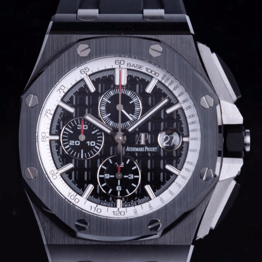 오데마피게 로얄오크 오프쇼어 크로노그래프 블랙 다이얼 세라믹 블랙 러버 스트랩 44mm 26405CE