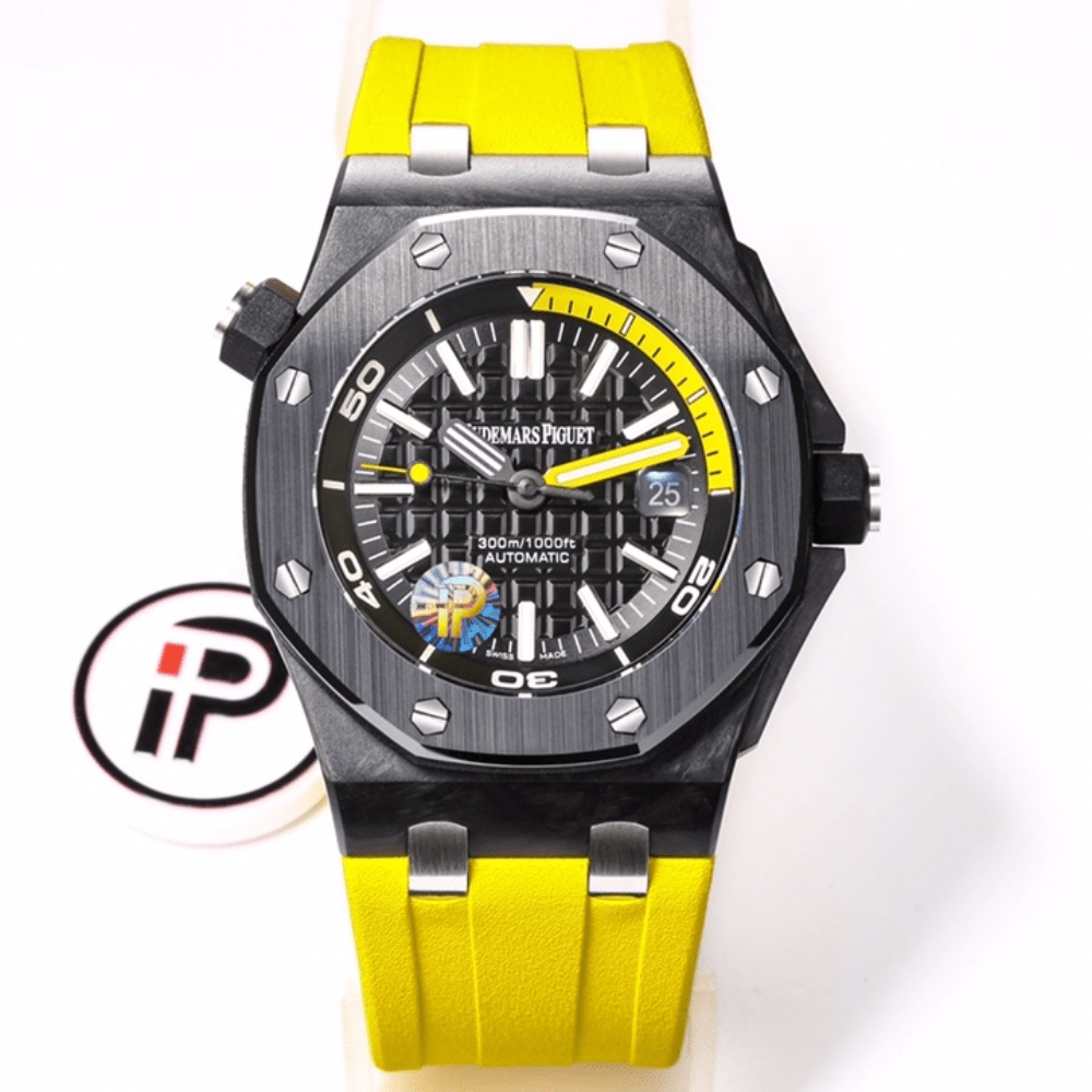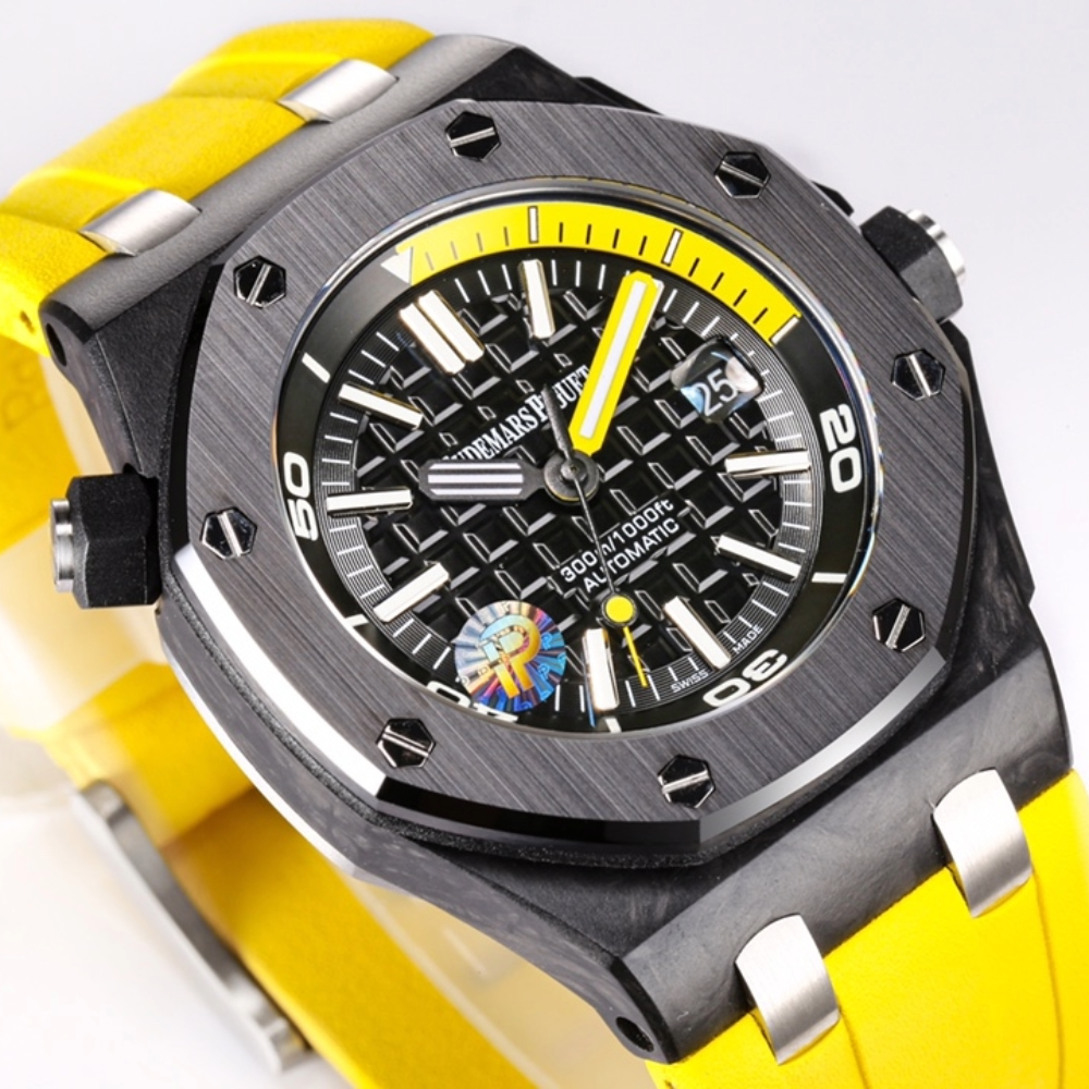 오데마피게 로얄오크 오프쇼어 다이버 블랙 다이얼 세라믹 옐로우 러버 스트랩 42mm 15706AU