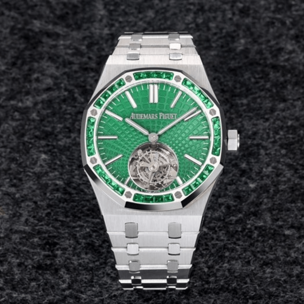 오데마피게 로얄오크 플라잉 투르비옹 그린 다이얼 SS 브레이슬릿 41mm 26532IC