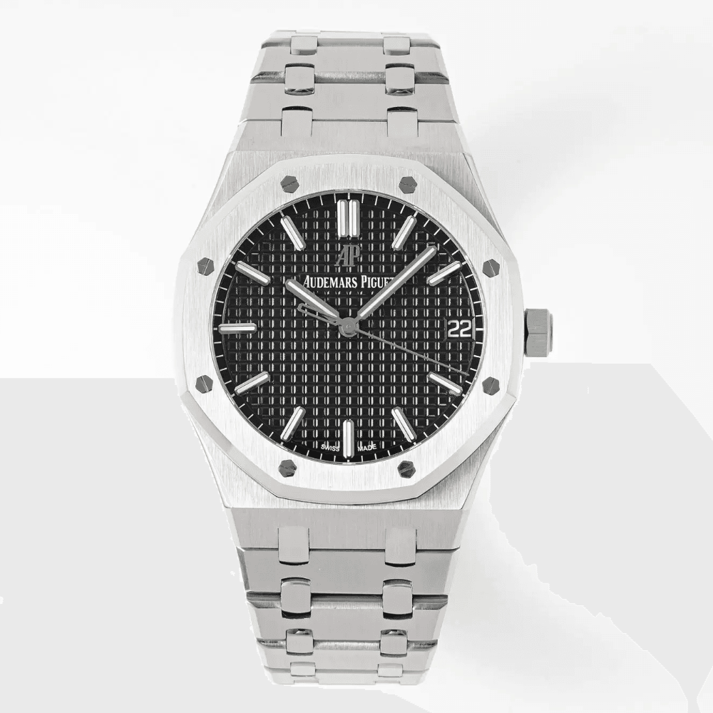 오데마피게 로얄오크 블랙 텍스처 다이얼 SS 브레이슬릿 V3 41mm 15500