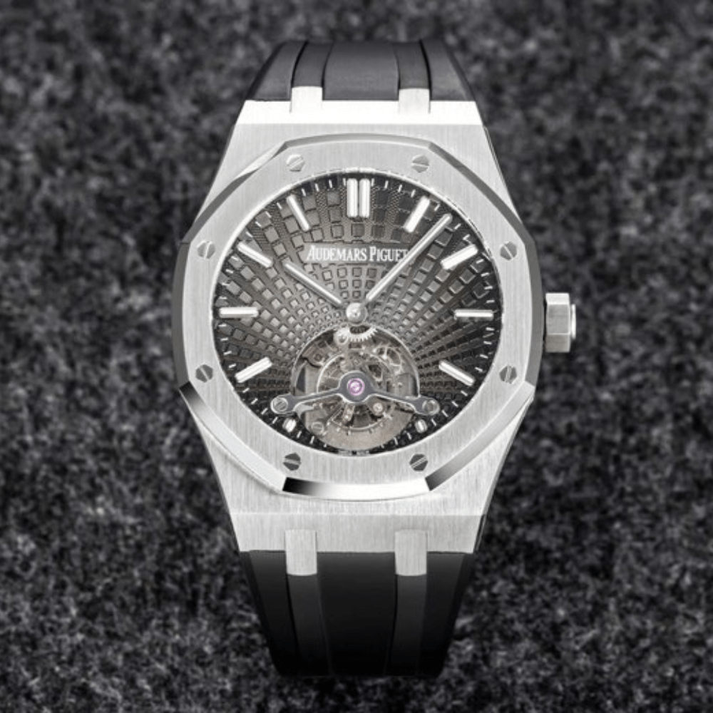 오데마피게 로얄오크 투르비옹 그레이 다이얼 스틸 블랙 러버스트랩 V3 41mm 26522BC