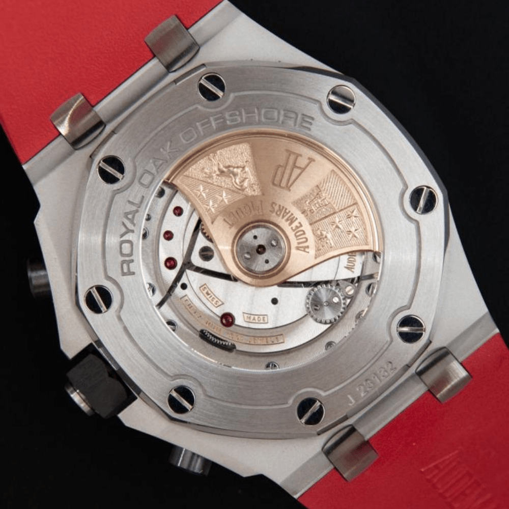 오데마피게 로얄오크 오프쇼어 크로노그래프 블랙 다이얼 스틸 블랙/레드 러버스트랩 44mm 26470SO
