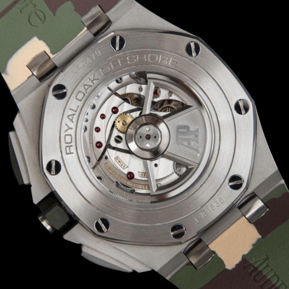 | 움직임 | 기본 무브먼트: 28,800vph의 Asian 7750 자동 크로노그래프 무브먼트; 장식: 정품 무브먼트에 따라 제작된 플래티넘 도금 무브먼트 플레이트와 로터, 현재 가장 멋진 AP Calibre 3126 무브먼트 복제품. |