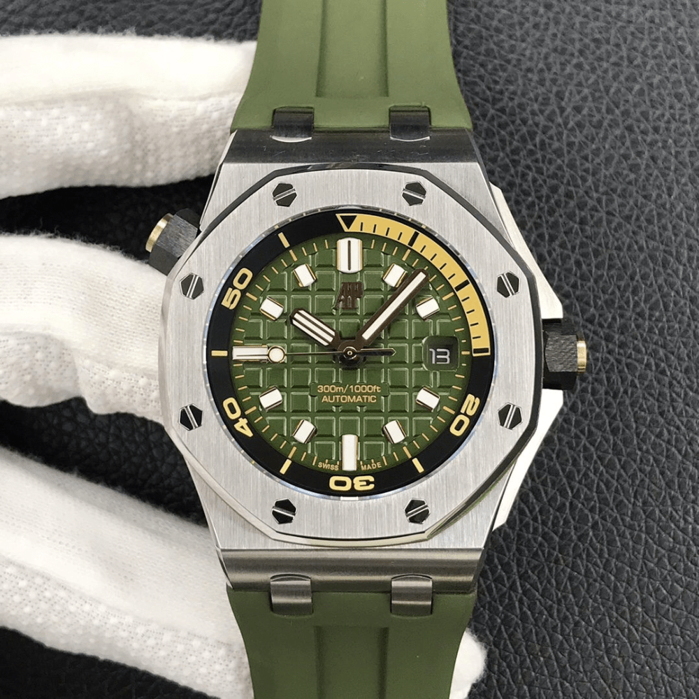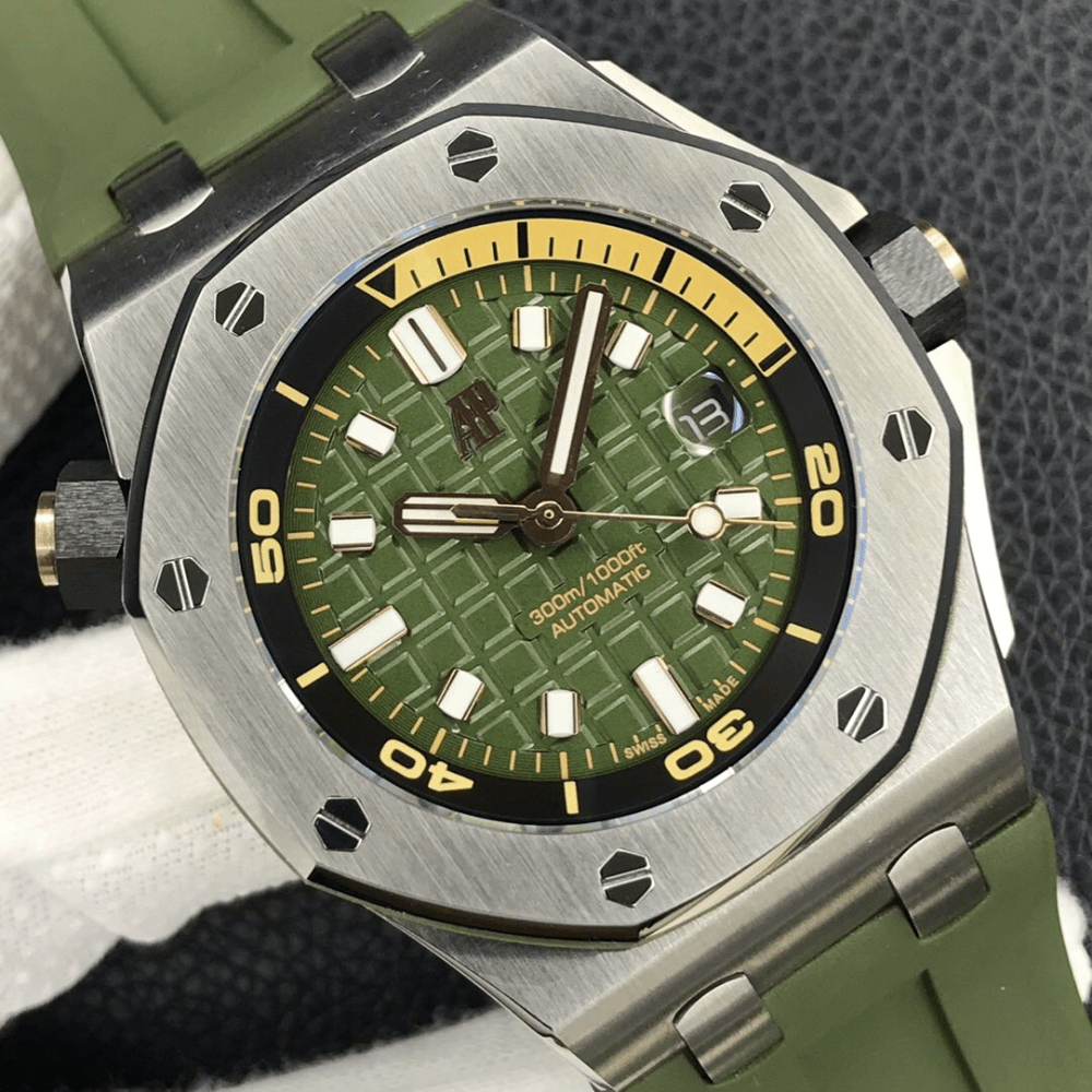 오데마피게 로얄오크 오프쇼어 그린 텍스처 다이얼 스틸 그린 러버 스트랩 42mm 15720ST