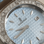 33mm의 작은 사이즈에도 불구하고 오데마 피게 특유의 순수한 아름다움과 탄탄한 라인이 그대로 드러나며, 다이아몬드가 박힌 베젤은 착용하는 여성에게 더욱 여성스러운 아름다움을 더해줍니다.