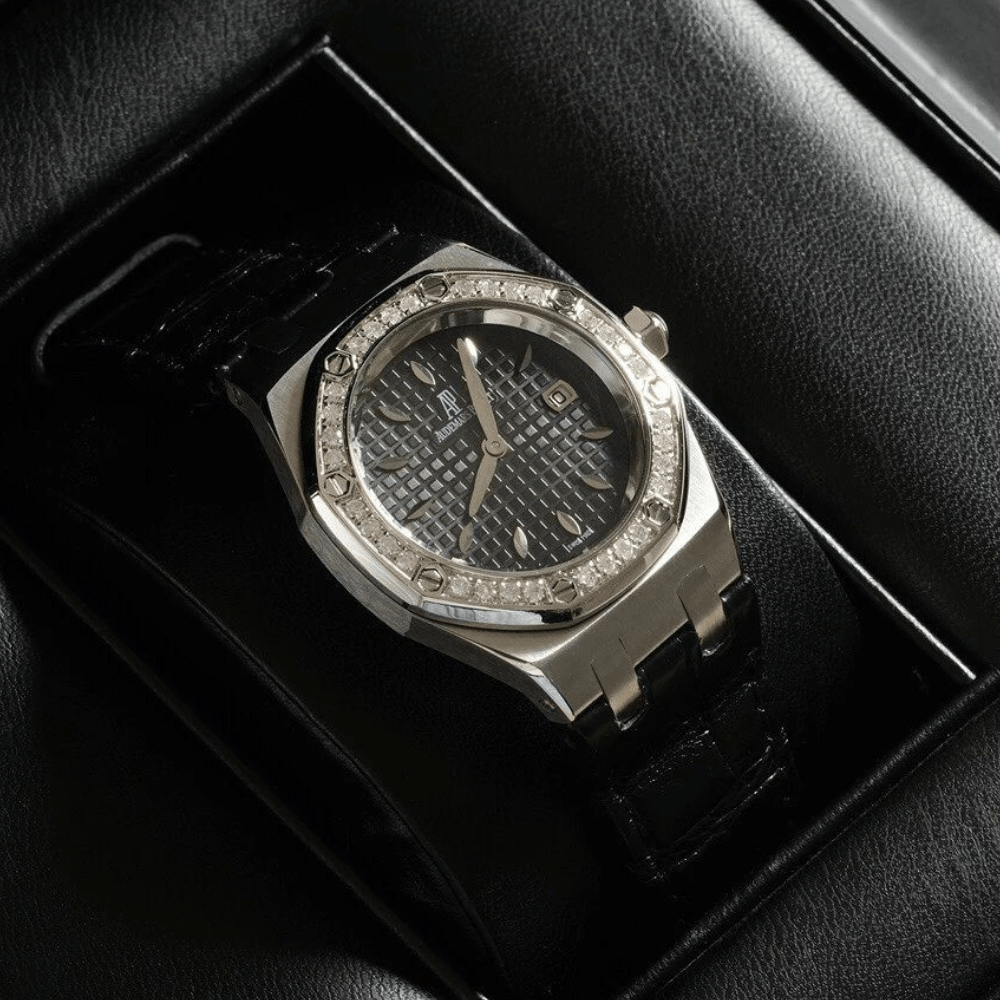 33mm의 작은 사이즈에도 불구하고 오데마 피게 특유의 순수한 아름다움과 탄탄한 라인이 그대로 드러나며, 다이아몬드가 박힌 베젤은 착용하는 여성에게 더욱 여성스러운 아름다움을 더해줍니다.