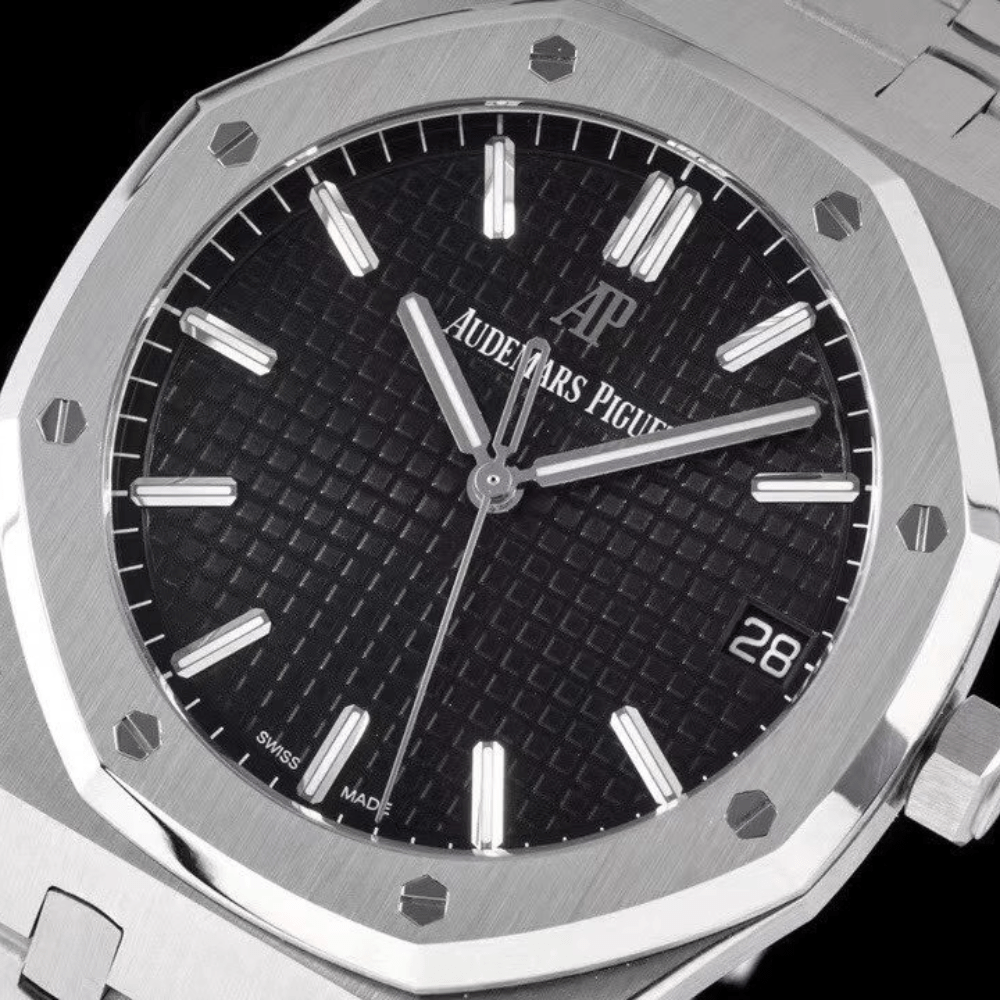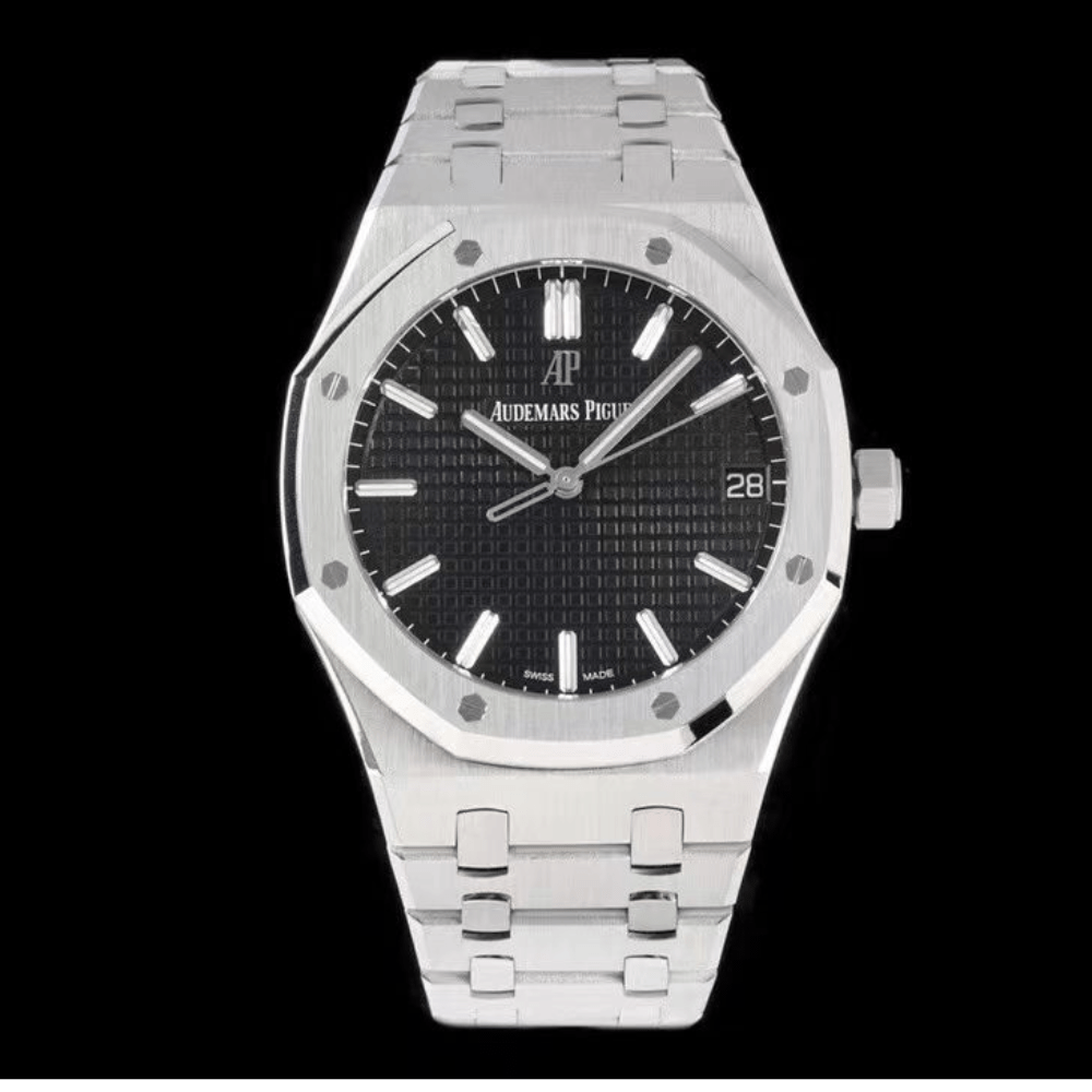 오데마피게 로얄오크 블랙 텍스처 다이얼 스틸 SS 브레이슬릿 V2 41mm 15500ST