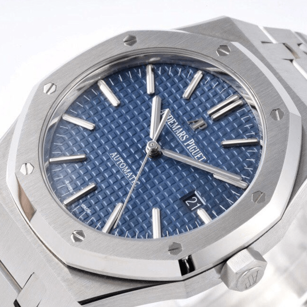 오데마피게 로얄오크 블루 텍스처 다이얼 스틸 SS 브레이슬릿 V2 41mm 15400ST