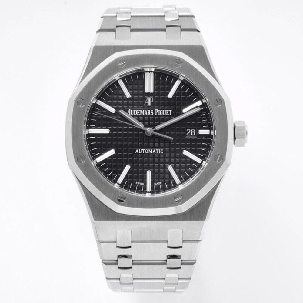 오데마피게 로얄오크 블랙 텍스처 다이얼 스틸 SS 브레이슬릿 V2 41mm 15400ST