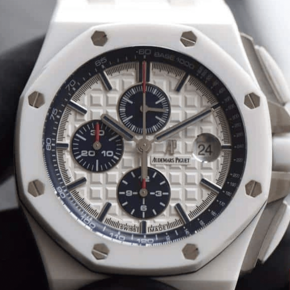 오데마피게 로얄오크 오프쇼어 화이트 다이얼 세라믹 화이트 러버스트랩 44mm 26402CB