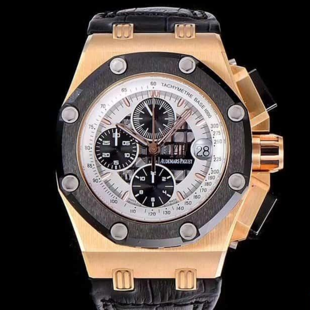 오데마피게 로얄오크 오프쇼어 블랙/화이트 다이얼 로즈골드 블랙 가죽스트랩 42mm 26078RO