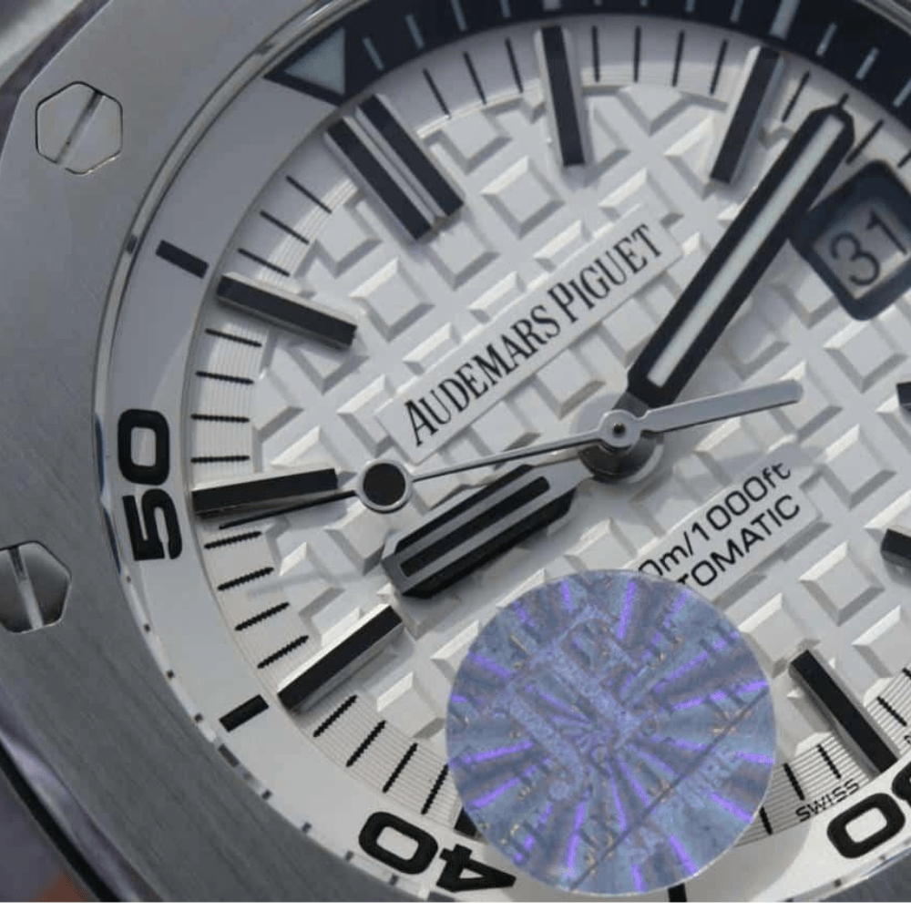 오데마피게 로얄오크 오프쇼어 다이버 화이트 다이얼 블랙 러버스트랩 42mm 15710