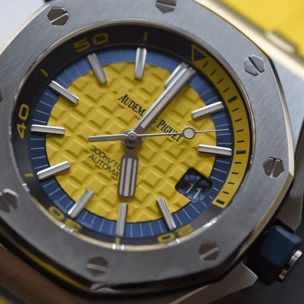 오데마피게 로얄오크 오프쇼어 다이버 옐로우 다이얼 러버 스트랩 42mm 15710ST