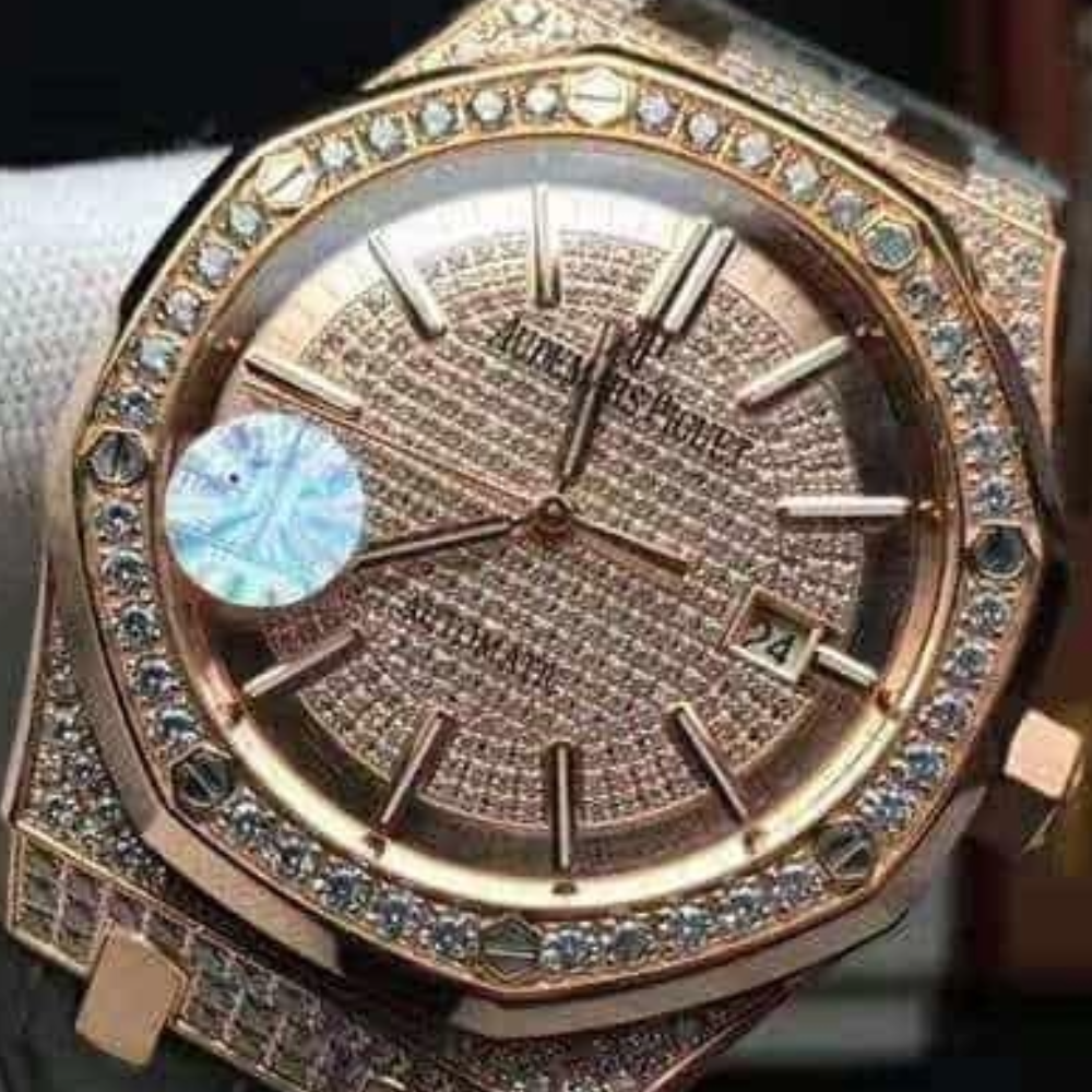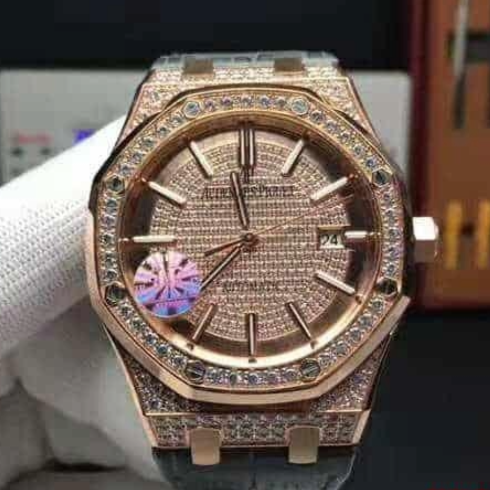 오데마피게 로얄오크 풀다이아 로즈골드 블랙 가죽스트랩 41mm 15452