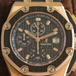 오데마피게 로얄오크 오프쇼어 블랙 다이얼 사파이어 로즈골드 몬토야 한정판 가죽 스트랩 44mm 26030