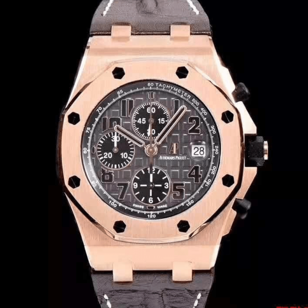 오데마피게 로얄오크 오프쇼어 그레이 다이얼 로즈골드 가죽 스트랩 42mm 26170ST