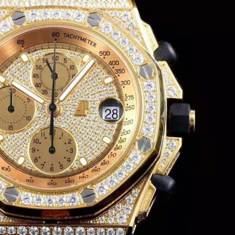 오데마피게 로얄오크 옐로우골드 풀다이아 가죽 스트랩 42mm 26067