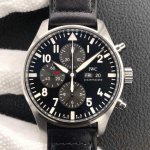 IWC 파일럿 파이터 크로노그래프 블랙 다이얼 레더 스트랩 43mm IW377709