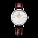IWC 포르토피노 레이디 실버 화이트 다이얼 레더 스트랩 34mm IW357403