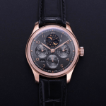IWC 포르투기저 퍼페츄얼 문페이즈 로즈골드 그레이 다이얼 레더 스트랩 41mm IW503404
