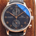 IWC 포르투기저 크로노그래프 로즈골드 블랙 다이얼 레더 스트랩 41mm IW371482