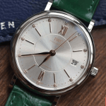 포르토피노 오토매틱 37은 9.2x37mm의 작은 사이즈로 출시된 독특한 디자인으로, 시대를 초월하는 클래식 시계를 사랑하는 많은 시계 팬들의 사랑을 받고 있습니다. 스테인리스 스틸 모델은 실버 도금 다이얼에 12개의 스와로브스키 크리스털 다이아몬드가 세팅되어 있으며, 동일한 품질의 산토니 악어 가죽 스트랩이 매치되어 있습니다. 엄선된 다이아몬드는 모두 최고급으로 제작되어 시계 전체를 눈부시게 빛나게 하지만, 전체적인 디자인은 우아하고 간결합니다. 다이얼의 정교한 선버스트 패턴은 매력적인 빛과 그림자 효과를 선사하며, 미러 케이스의 광택 처리된 표면은 시계의 고귀한 품격을 온전히 보여줍니다. 최대 3bar의 방수 기능을 갖춘 이 시계는 시침, 분침, 초침 외에도 빠르게 조정할 수 있는 날짜 표시창을 갖추고 있습니다. 하단 커버는 광택 및 열처리된 고경도 나사로 제작되었습니다. 슬롯형 구멍은 절삭 가공과 3차원 비틀림 가공을 통해 깨짐을 방지합니다. 시중에 판매되는 일반 나사는 몇 배나 저렴하지만, 부러지기 쉽습니다.