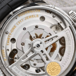 9시 방향의 플라잉 투르비용은 밸런스 휠에 대한 중력의 부정적인 영향을 상쇄하여 이동 속도의 편차를 효과적으로 상쇄하여 시계를 매우 정확하게 만듭니다.