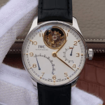 AZ IWC 포르투기즈 시리즈. IWC가 자체 개발한 Cal. 51900 완전 자동 트루 투르비용 무브먼트의 커스텀 버전을 탑재했습니다. 무브먼트 덱이 업그레이드되었습니다. 오리지널 직경은 44.2mm, 두께는 15.5mm입니다. 스트랩: 이탈리아산 소가죽. 양면 사파이어 미러. 오리지널과 동일한 캘린더 플라이백과 3자리 파워 리저브 디스플레이를 탑재했습니다. 오리지널과 완벽하게 동기화됩니다.