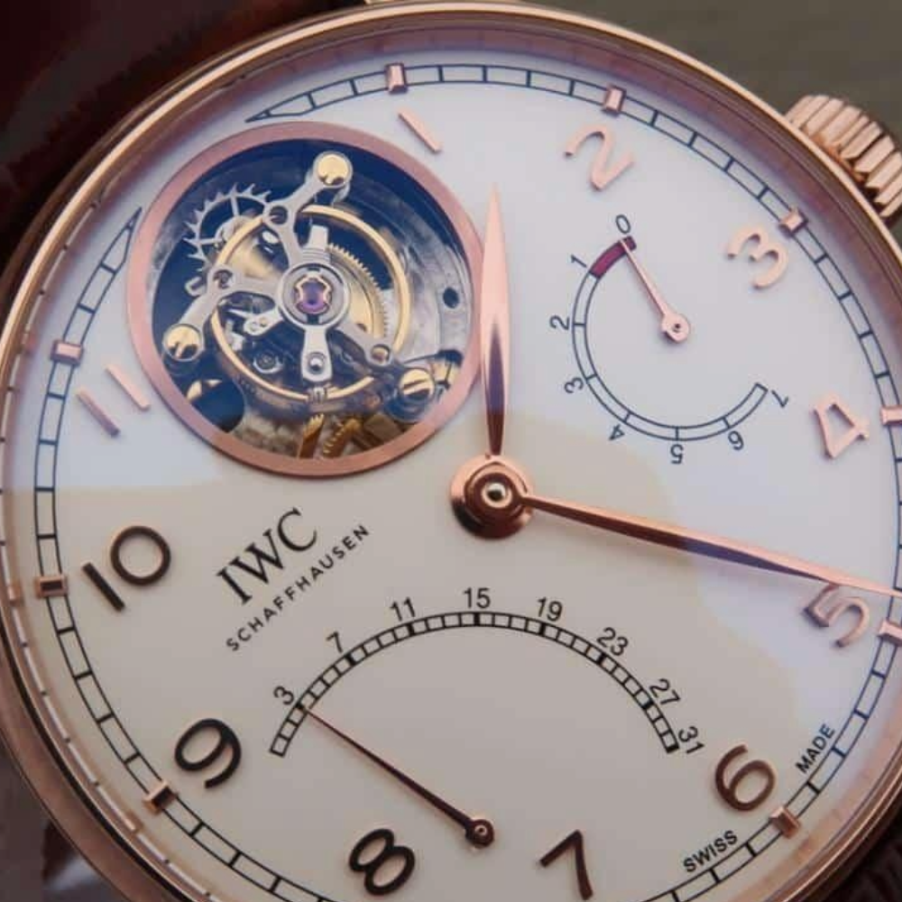 AZ IWC 포르투기즈 시리즈. IWC가 자체 개발한 Cal. 51900 완전 자동 트루 투르비용 무브먼트의 맞춤형 버전을 탑재했습니다.
