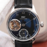 IWC 포르투기저 투르비옹 오토매틱 스틸 블랙 다이얼 레더 스트랩 42mm IW546302