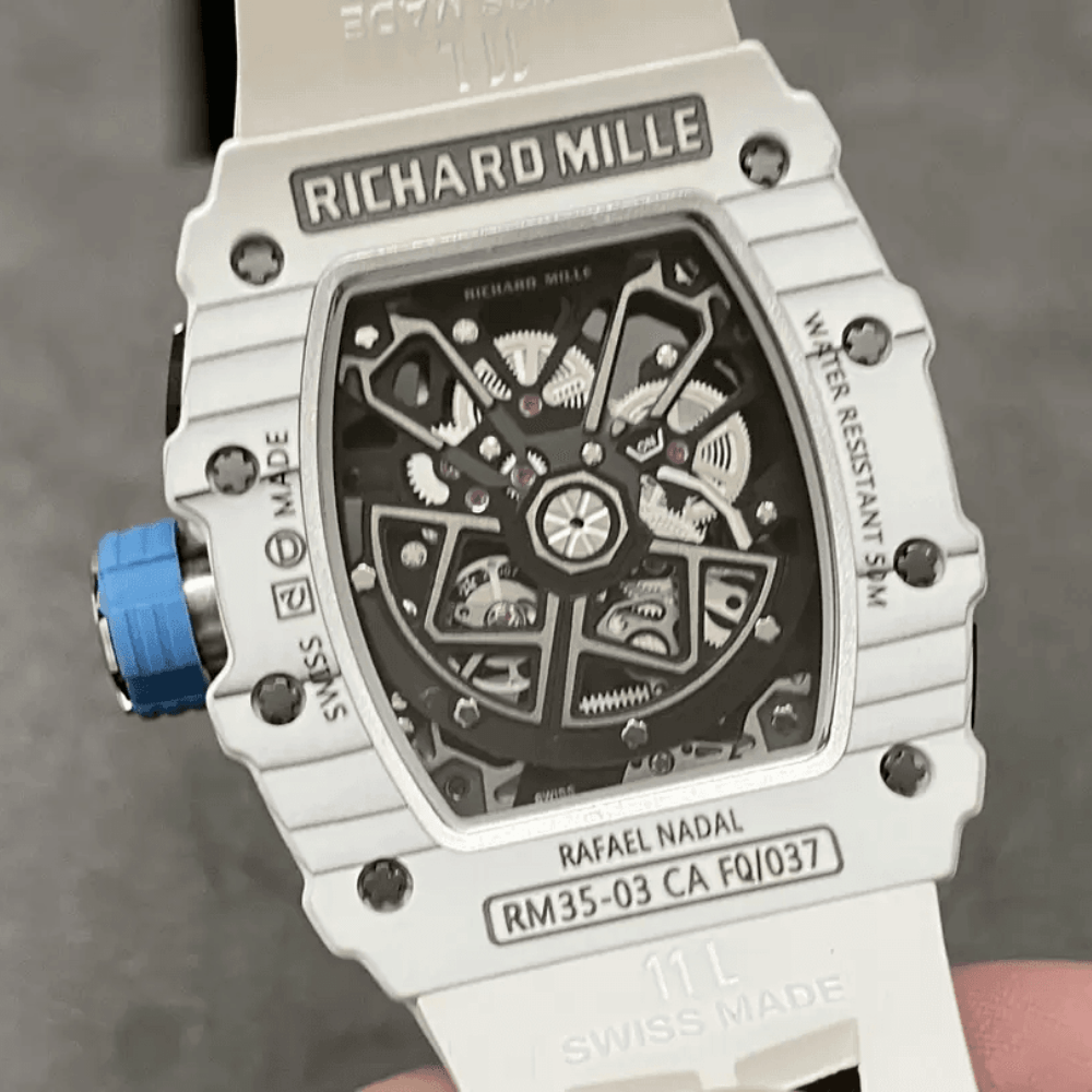 리차드밀 라파엘 나달 화이트 카본 스켈레톤 다이얼 화이트 러버 스트랩 RM35-03