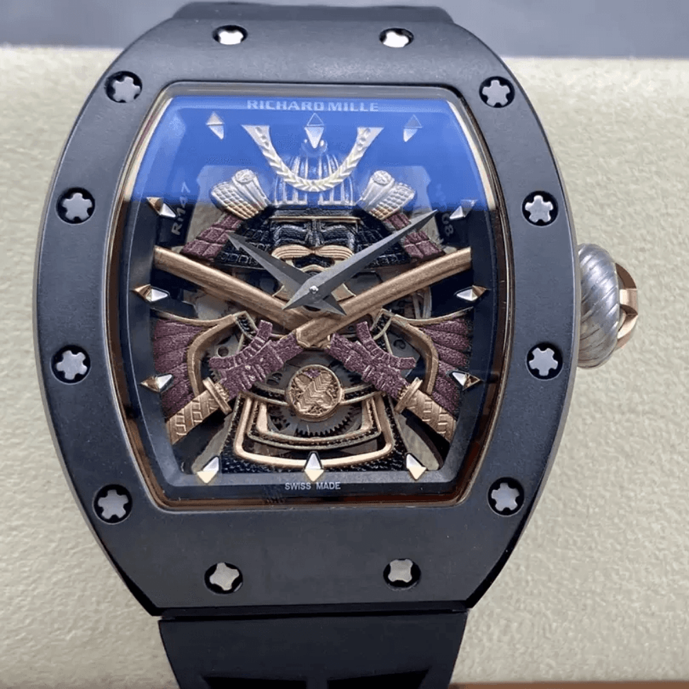 리차드밀 스켈레톤 사무라이 다이얼 사파이어 블랙 케이스 블랙 러버 스트랩 RM47