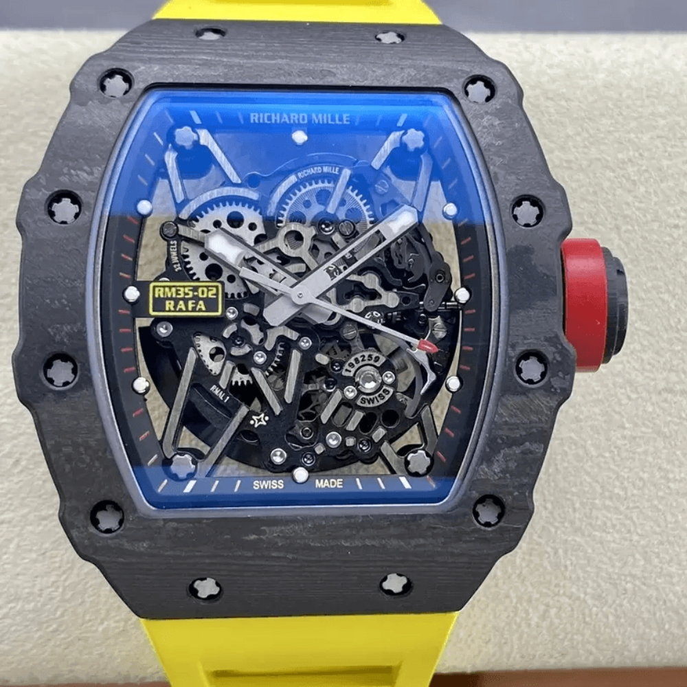 리차드밀 라파엘 나달 블랙 카본 스켈레톤 다이얼 옐로우 러버 스트랩 RM35-02