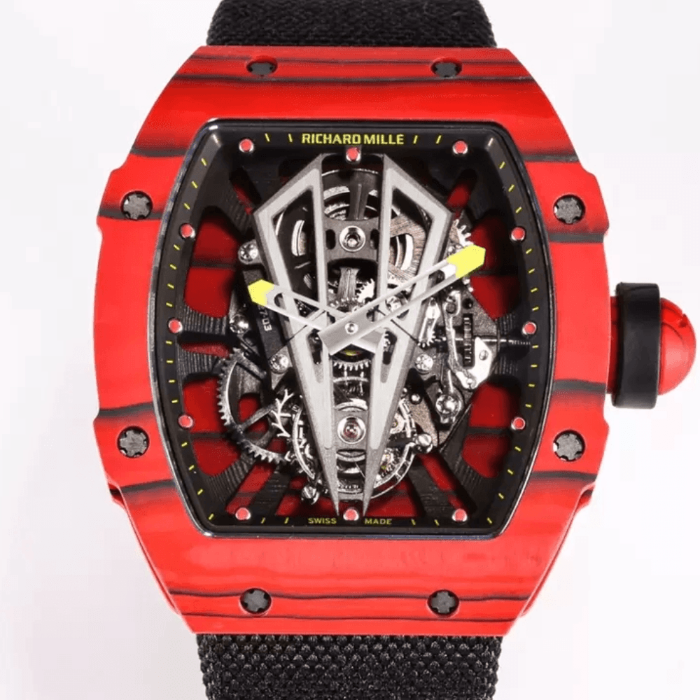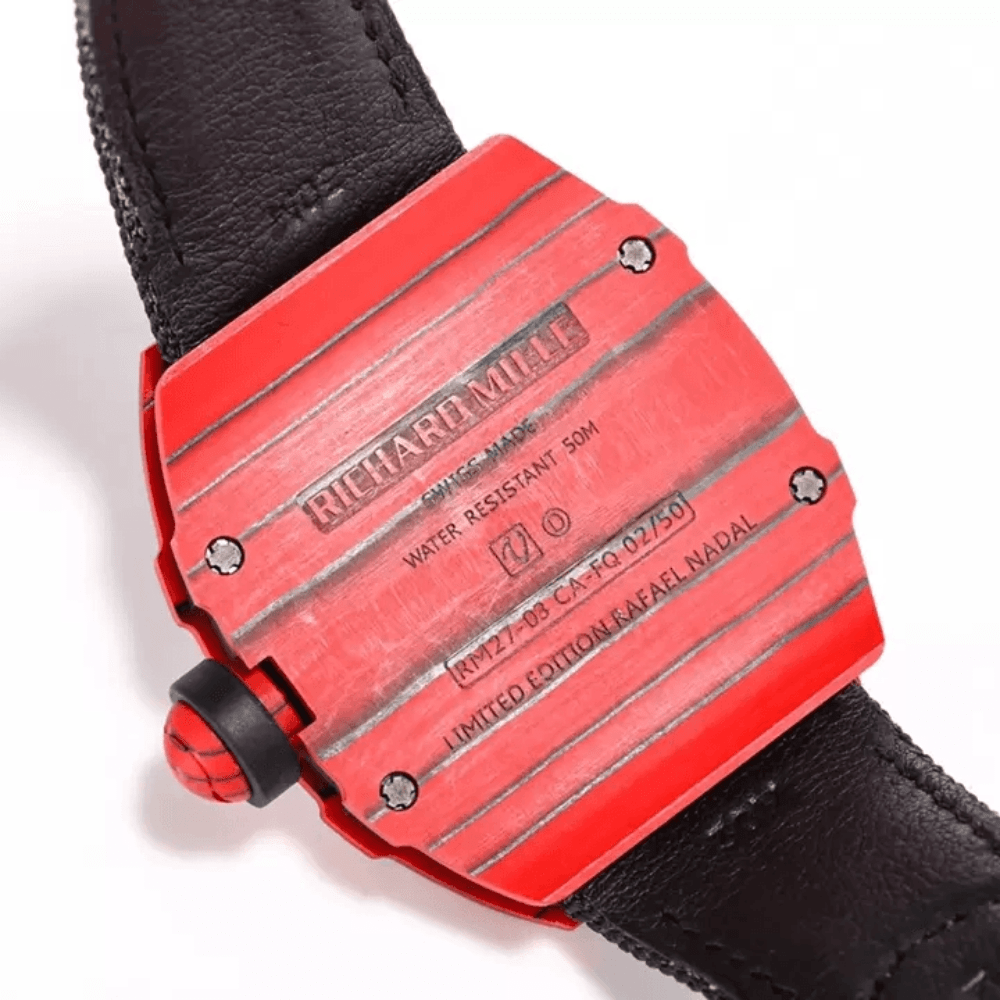 리차드밀 라파엘 나달 레드 카본 투르비옹 스켈레톤 다이얼 블랙 우븐 스트랩 50EA 한정판 RM27-03