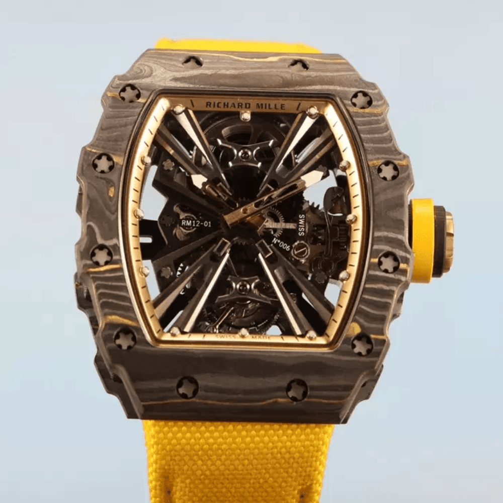 리차드밀 투르비옹 블랙 카본 옐로우 우븐 스트랩 RM12-01