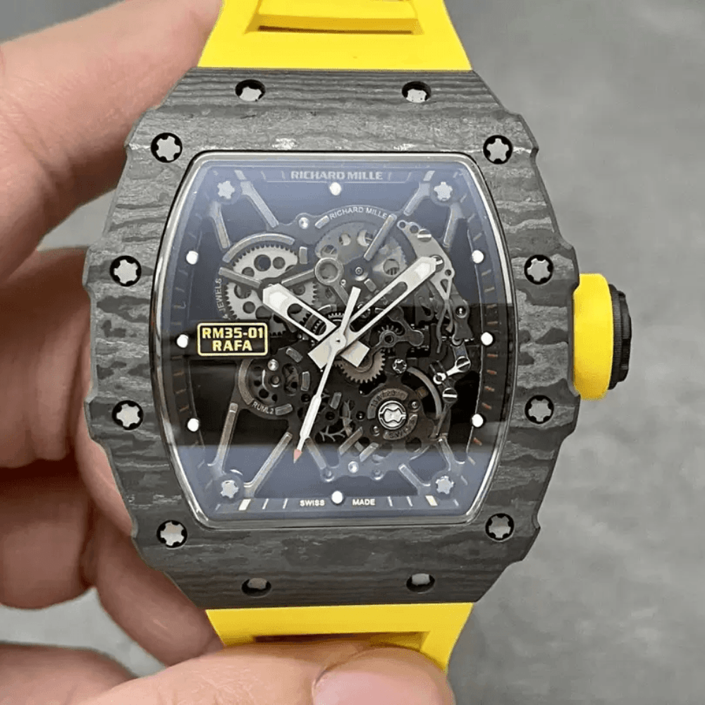 리차드밀 블랙 카본 스켈레톤 다이얼 옐로우 러버 스트랩 RM35-01