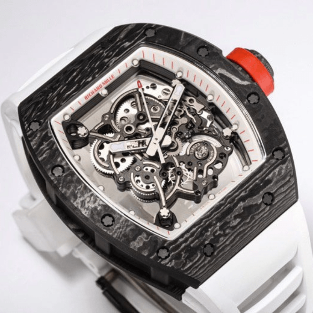 RICHARD MILLERM RM055 RM-055 BBRF 1:1 베스트 에디션 블랙 NTPT 카본 파이버 화이트 러버 스트랩 RMUL2 V3