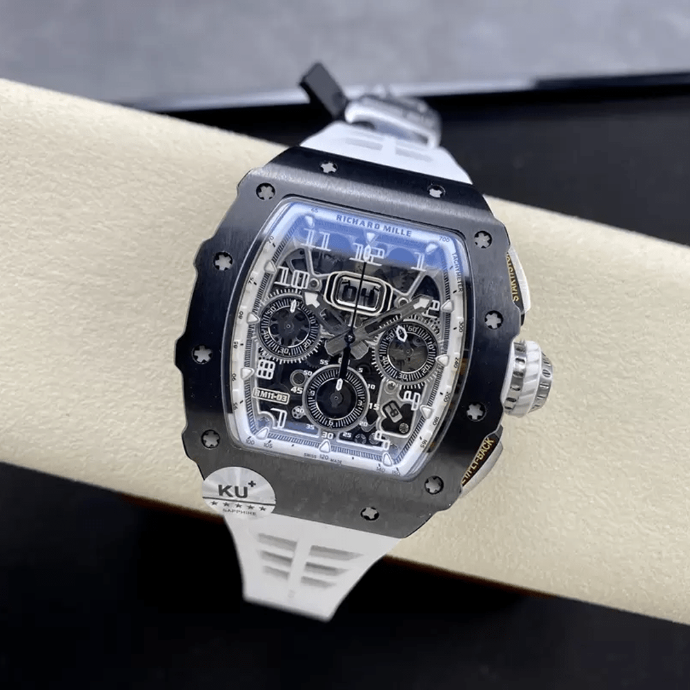 리차드 밀 RM11-03 RM1103 블랙 카본 KV 팩토리 베스트 에디션 스켈레톤 다이얼, 화이트 러버 스트랩 v5