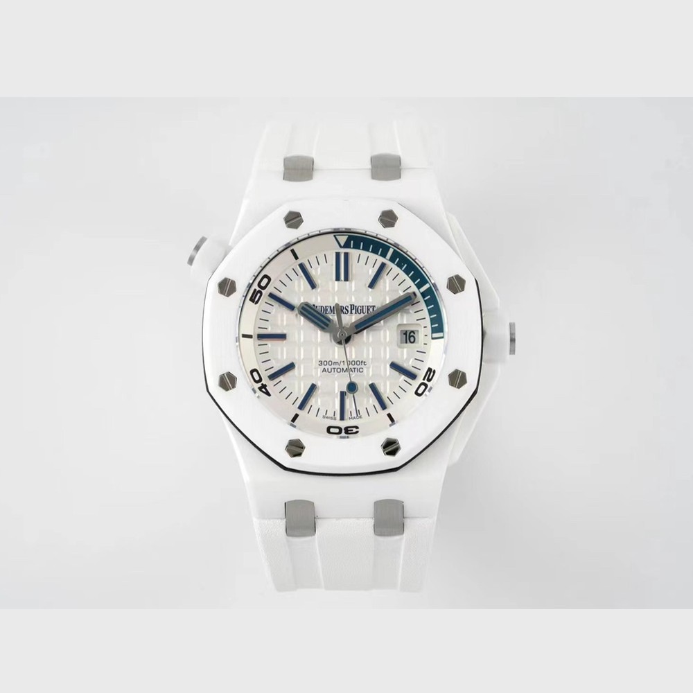 오데마피게 로얄오크 오프쇼어 다이버 화이트 다이얼 세라믹 화이트 러버 스트랩 42mm 15707CB