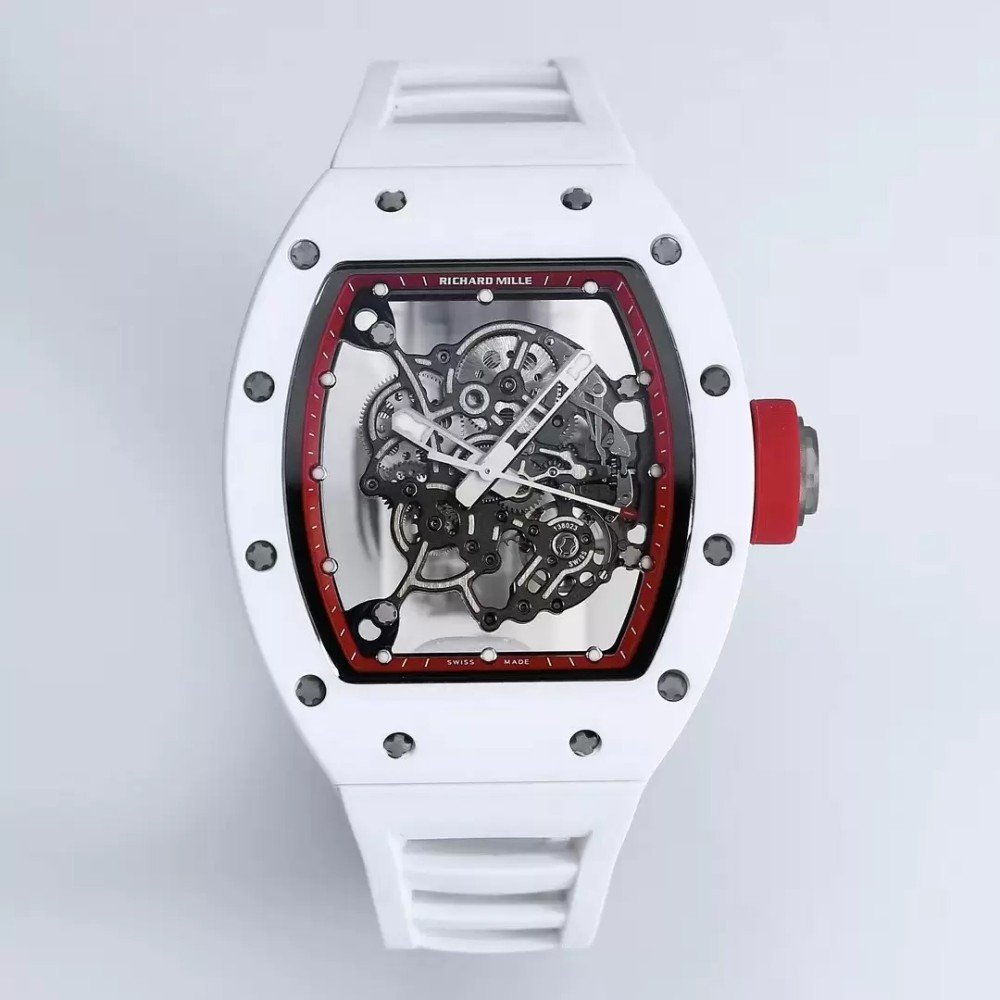 리차드밀 부바왓슨 화이트 세라믹 스켈레톤 다이얼 화이트 러버밴드 V3버전 RM-055