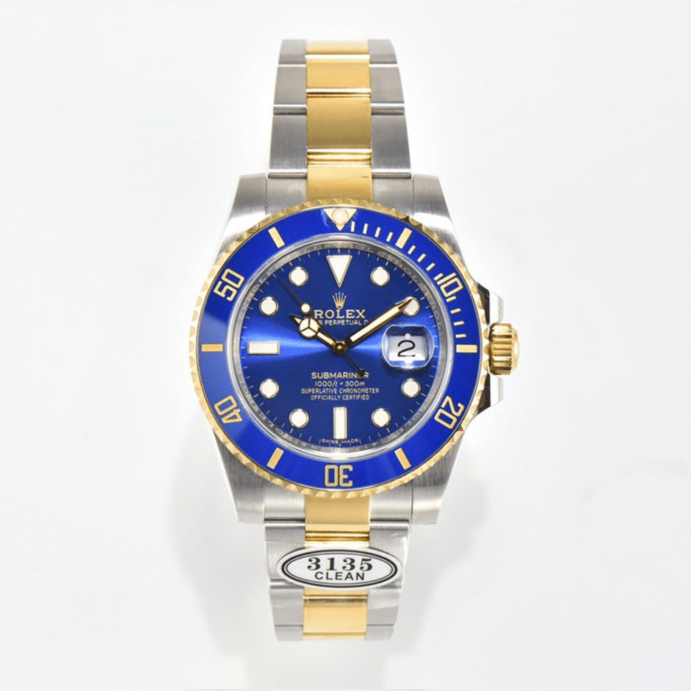 클린 팩토리 [V4 에디션 인터로킹 골드] 롤렉스 서브머리너 시리즈 116613LB-97203 블루 다이얼 시계 (인터로킹 골드 블루 서브머리너)