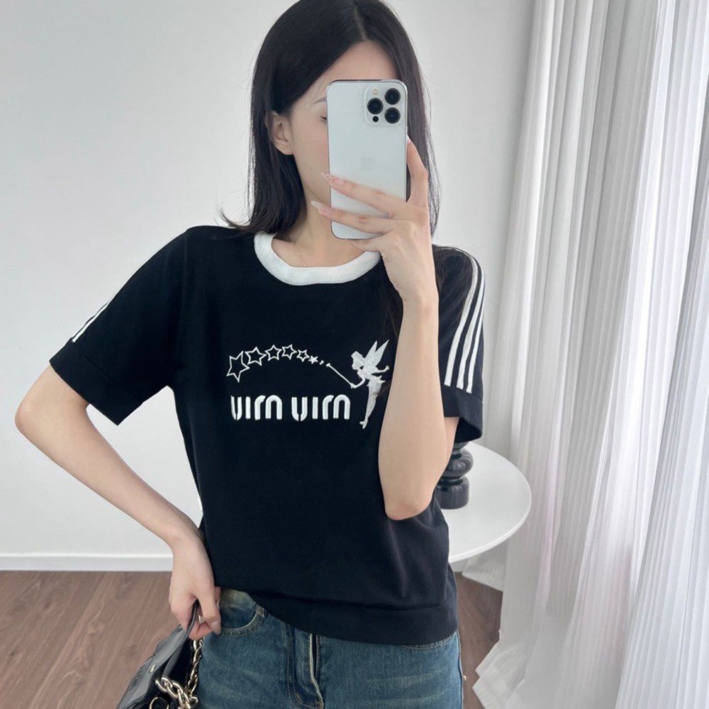 미우미우 24SS 입체 자수 로고 숏 반팔 티셔츠 블랙