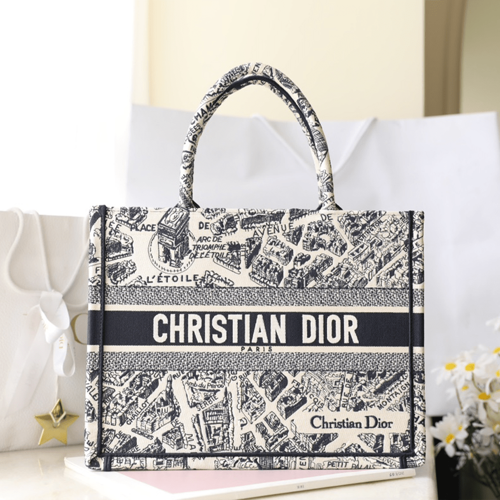 디올 Plan de Paris 자수 북 토트 미디엄 백