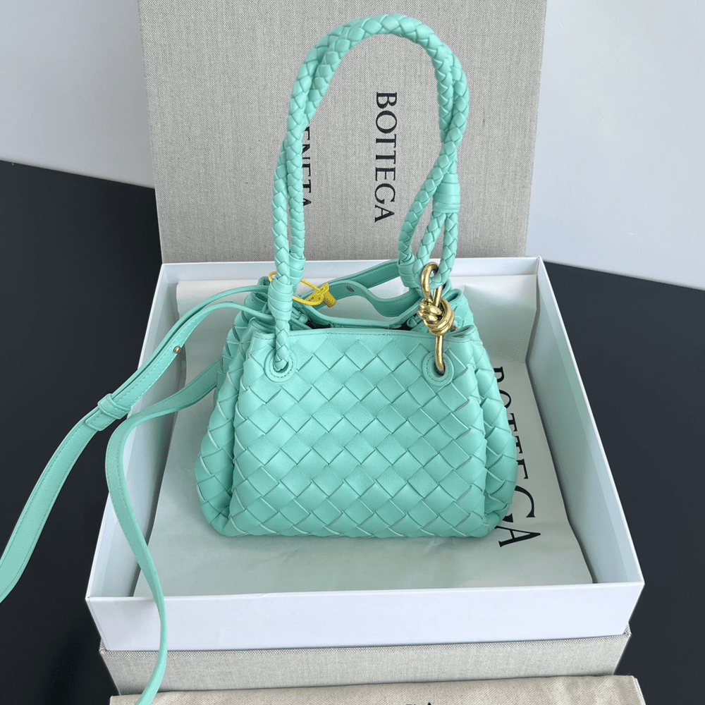 보테가베네타 인트레치아토 레더 숄더백 오아시스 블루 796569
