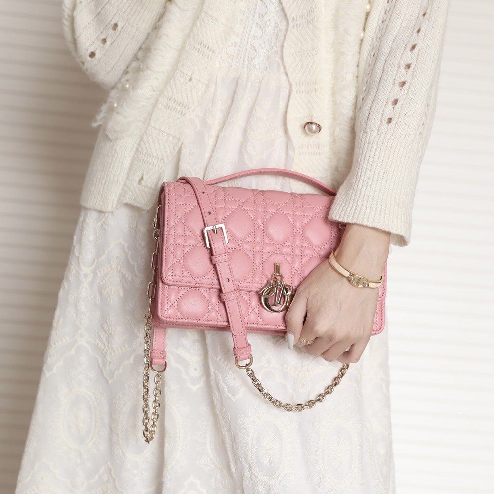 디올 레이디 탑 핸들 클러치 미니 백 핑크