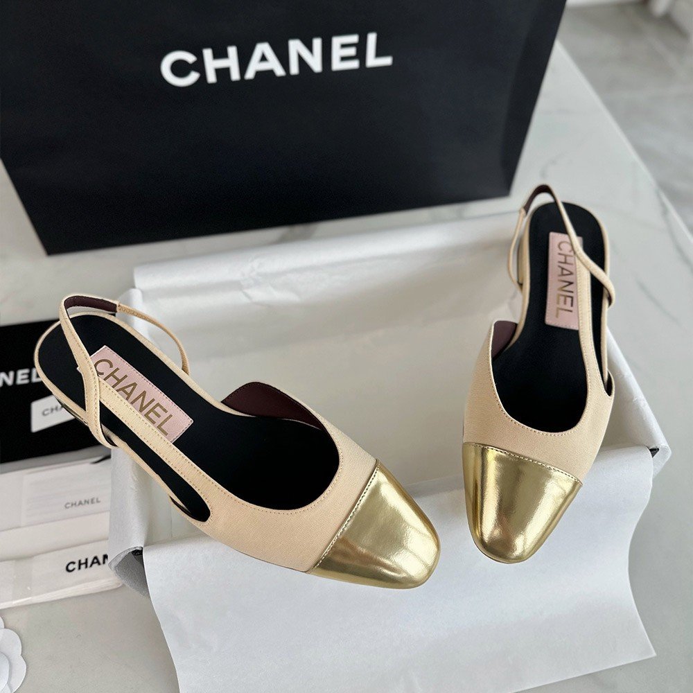 샤넬 24SS 베이지 골드 플랫 슬링백