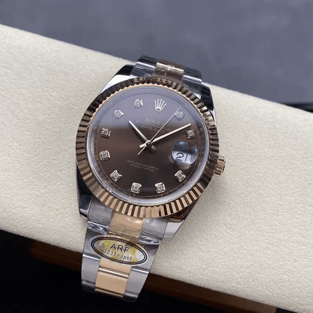 ARF 팩토리 신제품 출시! 41mm 롤렉스 데이트저스트 시리즈에 3235 무브먼트가 통합되었습니다. 2.5배 확대 미네랄 렌즈와 3차원 핸즈가 결합된 고화질 사파이어 크리스털이 특징입니다. 다이얼은 오일 프린트 마커, 정밀한 아크 및 챔퍼 폴리싱, 그리고 초강력 아이스 블루 야광으로 선명하게 표현됩니다.
