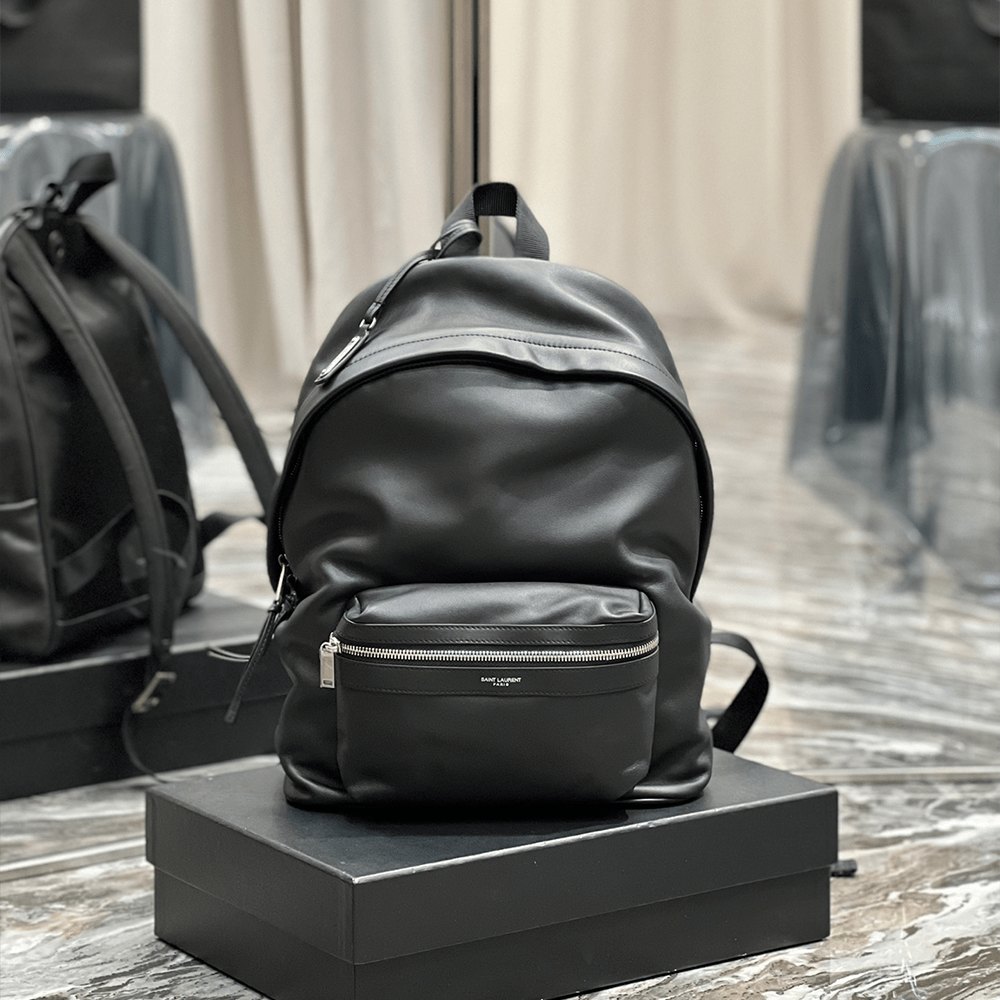 블랙 워시드 가죽 소재의 델라베 백팩 미듐