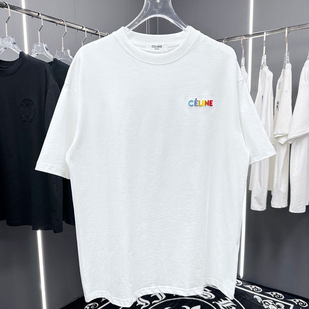 셀린느 24SS 무지개 자수 로고 반팔 티셔츠 화이트